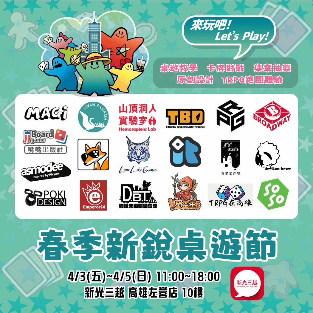 來看看這次 春季新銳桌遊節 有哪些廠商夥伴一起參加吧~